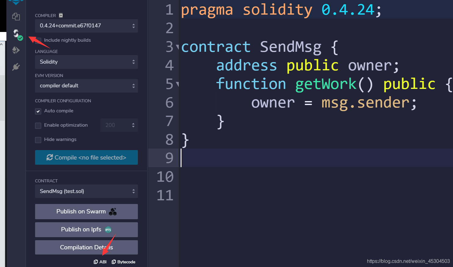在remix工具中编译合约后,会有一个abi,复制
