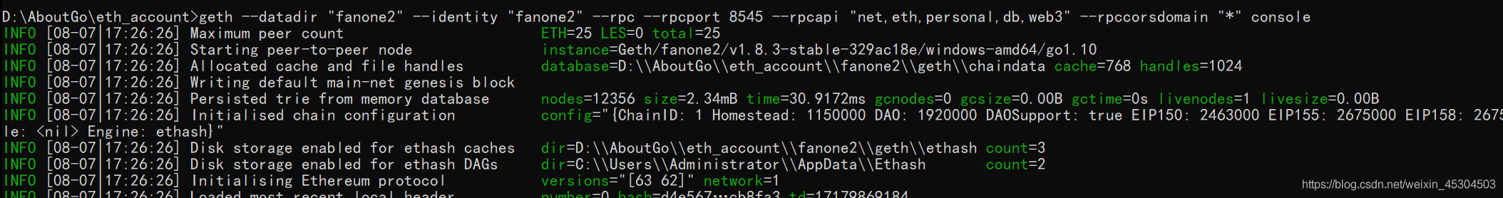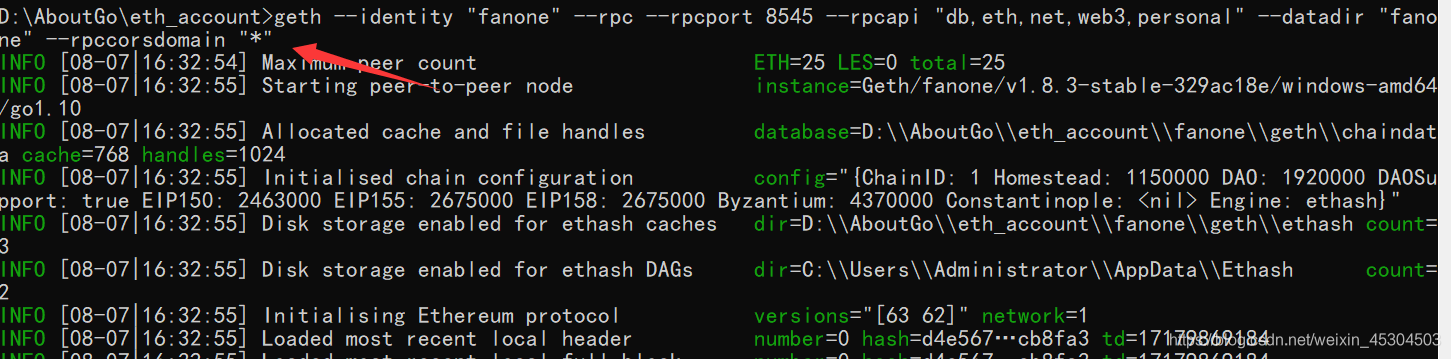 geth -datadir "fanone" init genesis.json