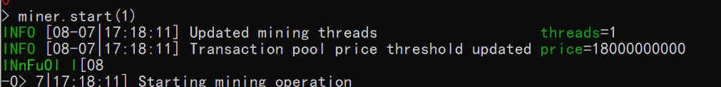 开启指定线程数挖矿:miner.start(1)