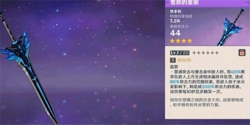 4、这是一把物理伤害加成的4星双手剑,虽然只是四星武器,但是过渡使用是非常合适的。