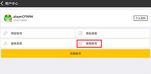 来到用户中心选择“删除账号”