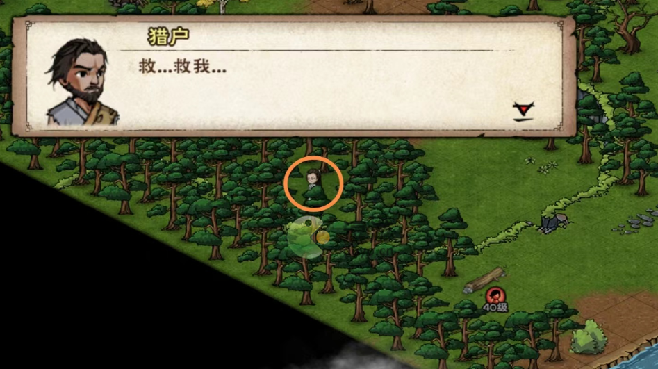 9、一伙人决定给山贼下毒,(38.39)草丛选躲藏。剧情后到木桶(38.37)倒入化血散,等山贼离开后,原地和小孟对话